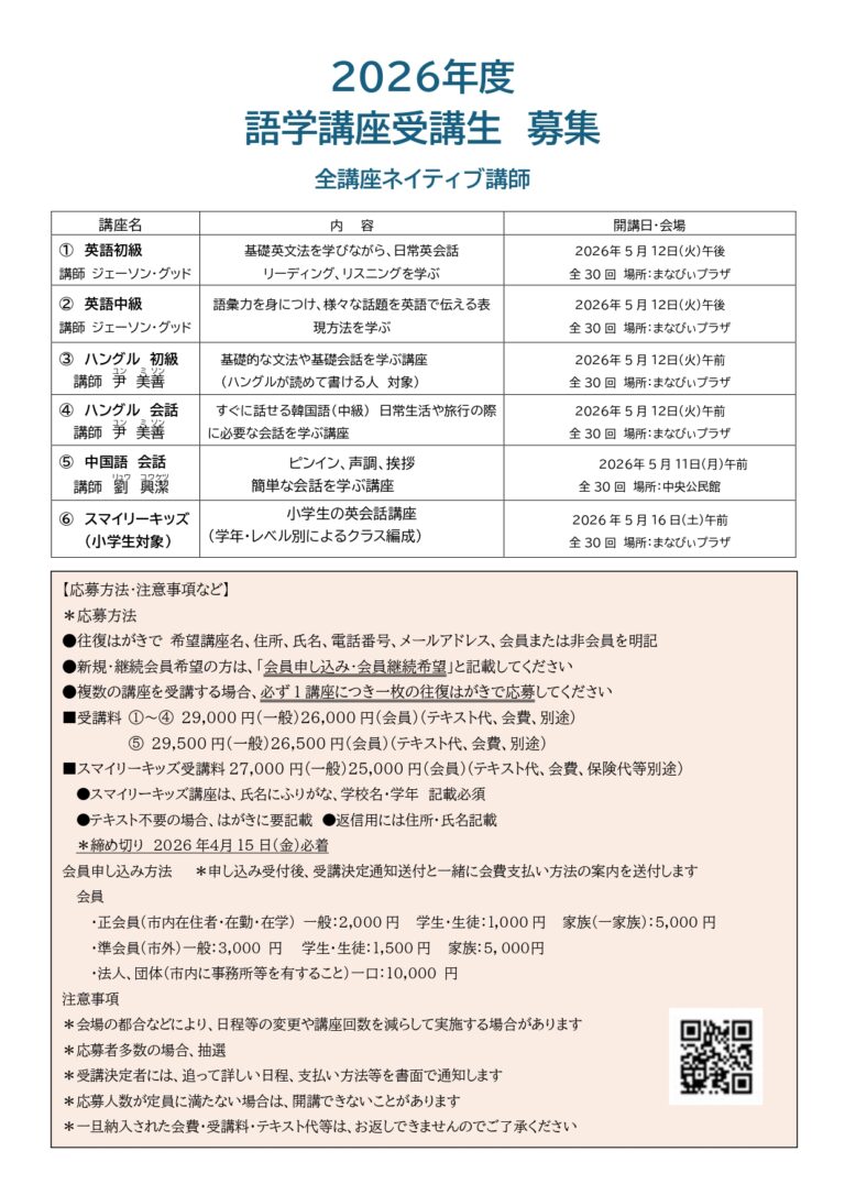 *応募人数が定員に満たない場合は、開講できないことがあります